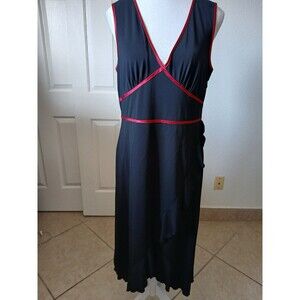 INC Womens Black Red Trim Midi Dress Asymmetrical Ruffle Hem Y2K Style Size L