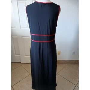 The INC Women's Dress in black with red trim and ruffle accents is a stylish midi dress perfect for both party and casual occasions. The sleeveless design with a V-neckline and pullover closure makes it easy to wear and comfortable. Made from a blend of rayon, spandex, and polyester, this dress is machine washable for easy care. The whimsygoth and 90's themes add a unique touch to the grunge and romantic style, making it a versatile piece for summer, fall, or spring seasons.