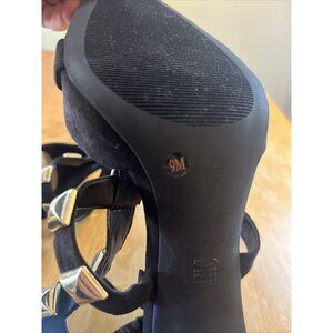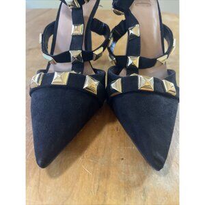 INC Womens Black Studded Strappy Syndia Pointed Toe Stiletto Zip-Up Shoes Sz 9