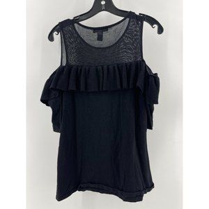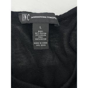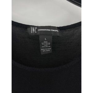 INC Women's Black Sweater Open Shoulder Sexy Size Large Sheer Neckline