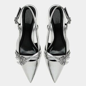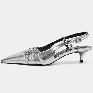 INC Womens Capeka Slingback Pumps Silver Triple Strap MSRP $99