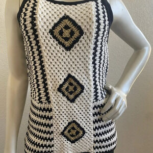 Delicate crochet goes geo on this striped and patterned top from I.n.c. International Concepts, the perfect combination of contrast colors and subtle shimmer