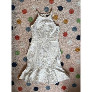 INC Women's Embroidered Halter White Sheath Flounce Dress Size 4P Fairy Coquette