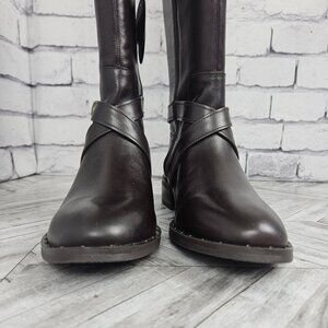 INC Womens Fadora Tall Dark Brown Leather Riding Boots 7.5M Side Zipper Buckle S