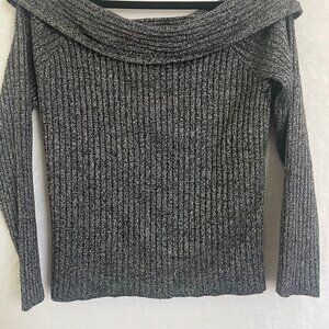 INC Womens Gray Glitter Long Sleeve Off Shoulder Party holiday stretch ribbed Blouse top sweater size L