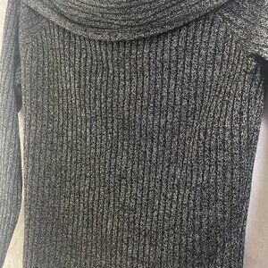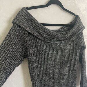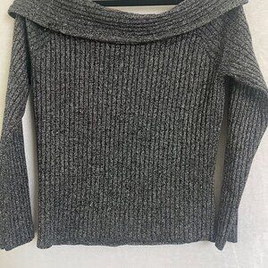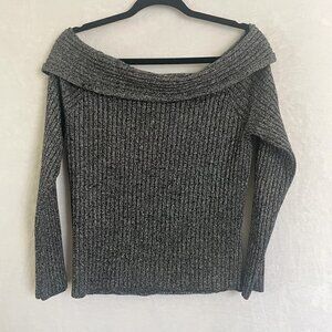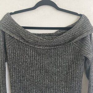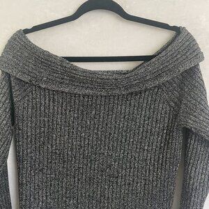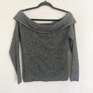 INC Womens Gray Glitter Long Sleeve Off Shoulder Party holiday stretch ribbed Blouse top sweater size L