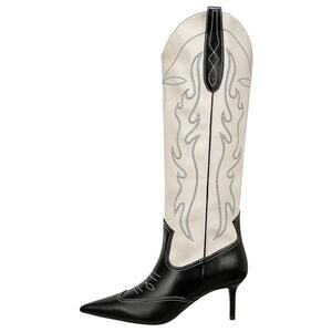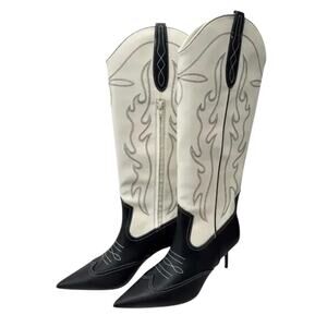 INC Women's Hayleigh Mid Stiletto Heel Cowboy Boots Black White Size 9
