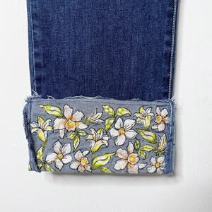 INC Women's Jeans 12/31 Embroidered-Cuff Cropped Dark Wash High Rise Distressed