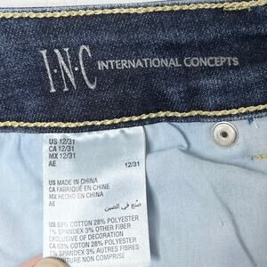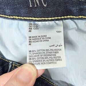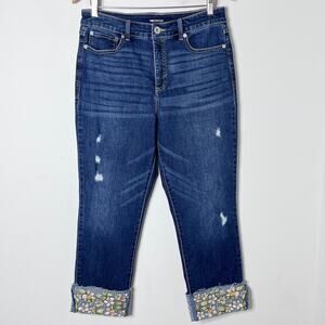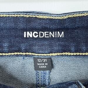 INC Women's Jeans 12/31 Embroidered-Cuff Cropped Dark Wash High Rise Distressed
