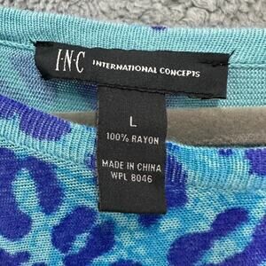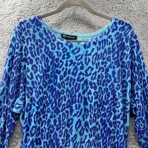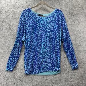 INC Women's Large Blue Cougar Print Long Sleeve Sweater Lightweight 80's-Esque