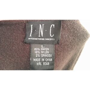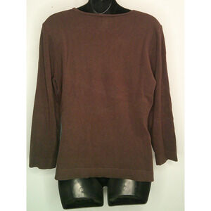INC Women's Large Long Sleeve Crew Neck Brown Sweater with Bow on Shoulder