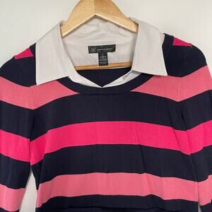 INC Womens Layered Striped Shirt Collared Preppy Casual Rugby Twee Work Small