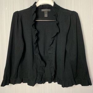 INC Womens Petite Black Ruffled Open Front Sweater Mediu