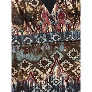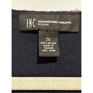 The INC Women's Plus 2X Babydoll Top is a bold and chic blouse perfect for various occasions including workwear, casual outings, and parties. With a V-neckline and long sleeves, this top features a geometric pattern that adds a touch of whimsy to your ensemble. Made from nylon, this machine washable top is designed for comfort and style, making it a versatile addition to your wardrobe. The tunic style and colorful design make it suitable for all seasons, whether it's summer, winter, fall, or spring.