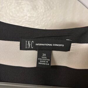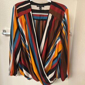 INC Womens Plus 2X Emily Stripe Orange Long Sleeve Blouse