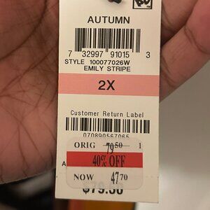 Color: Emily Stripe, (Orange, brown, blue, red, white)