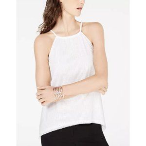 Brand new INC Women's Sequin Spaghetti Strap Jewel Neck Trapeze Party Top (White, M).
