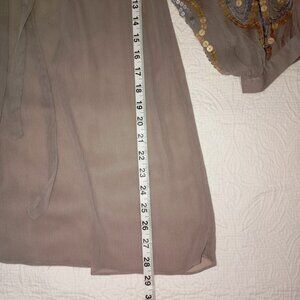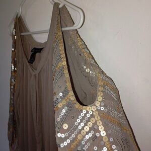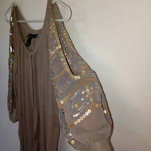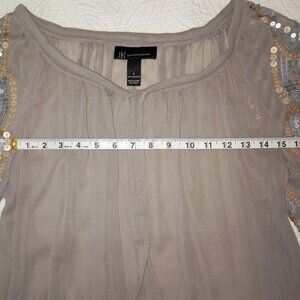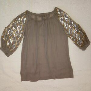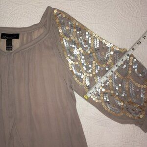 INC Womens Sequin-Embellished Blouse Size 4 Taupe 3/4 Sleeve Bohemia Boho