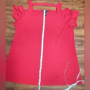 INC Women's Short Sleeve Cold Shoulder Red Blouse Size XL