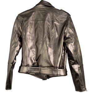INC Womens Small Metallic Faux Leather Moto Jacket With Belt NWT