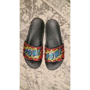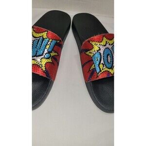 INC Womens Sparkly Pow Bling Slip On Slide Sandals Shoes US 11 M Black Red Multi-colored. Great for the pool. Pre-owned, there maybe some missing rhinestones. But lots of life left. Smoke-free and pet-free home. See pictures and ask any questions.