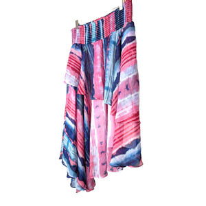 INC Womens Tie Dye Handkerchief Hem Smocked Chiffon Boho Fairy Sparkle Skirt L