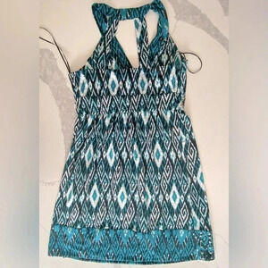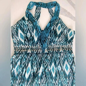 INC Women’s V-Neck Halter Mini Dress Studded Black, Blue, White Aztec Medium EUC
