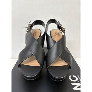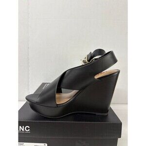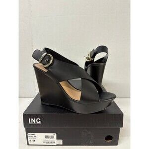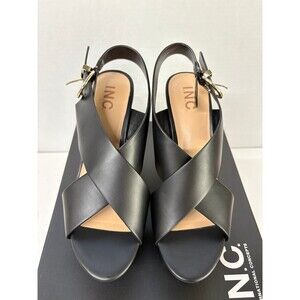 Brand new INC Women’s Vera Platform Wedge Slingback Sandals Black CrissCross Strappy Sz 8M
