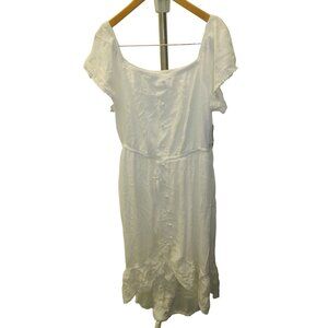 INC Womens White Gauze Dress XL With Lace Trimmed Hem & Button Details See Video