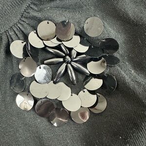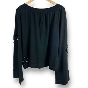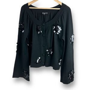 INC Women's XL Button Front Long Flare Sleeve Blouse Black Sequin Maximalist