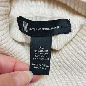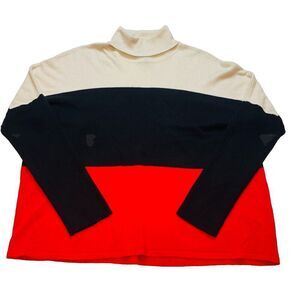 INC Wool Cashmere Sweater Womens XL Beige Black Red Colorblock Turtleneck Office