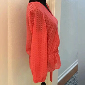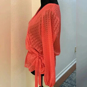 INC Wrap Top Semi Sheer Pink Elasticic Waist Blouse