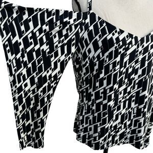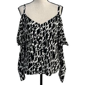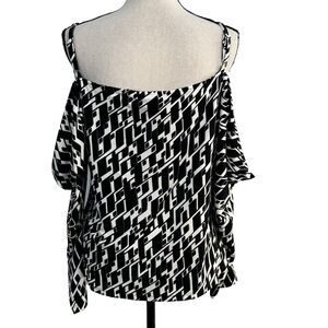 INC X-Large Top Cold-Shoulder Geometric Long Sleeves Stetch V-Neck Black Multi