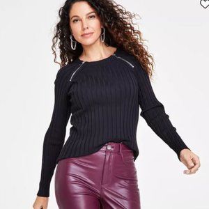 INC ZIPPER DETAIL RIBBED BLACK SWEATER