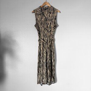 INC Zebra Print Shirtdress in Black and Tan Womens Medium Neutral Animal Print