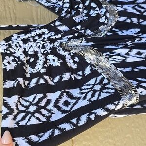 INC black white embellished ikat tribal print maxi dress 2x NWT