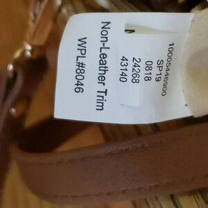 INC black/cream/gold straw colorblock crossbody bag with tan strap