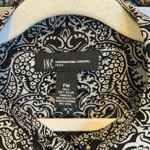 INC black/white print long sleeve jewel button down semi sheer top size MP
