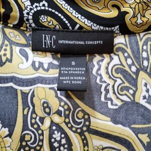 INC blouse womens size small black gold dark square neck retro vegas vibes top