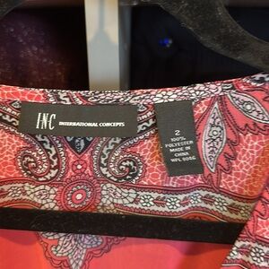 I.N.C. coral/black/white print elastic waistband vneck stud detail tunic size 2