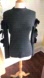 INC dark charcoal gray ribbed mock turtle neck sweater w/black bows on side arms