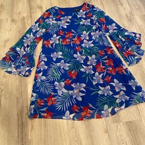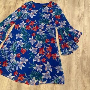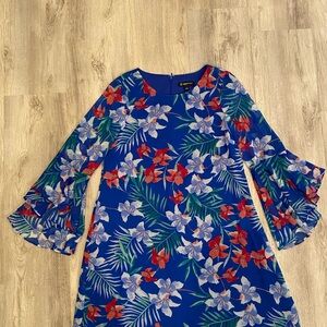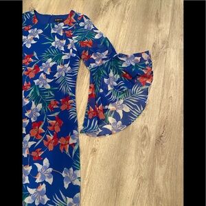 INC floral bell sleeve blue dress/size 8