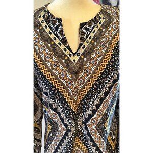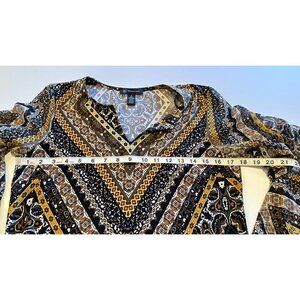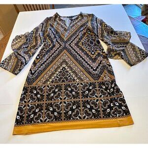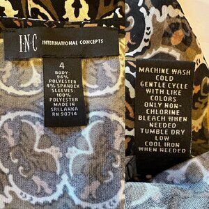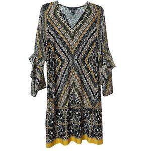 INC graphic paisley print dress ruffled sheer long sleeves women's size 4