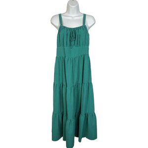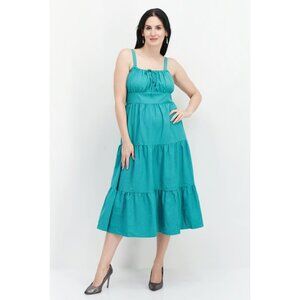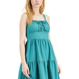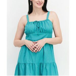 INC international Concepts Tiered Seersucker Midi Dress Green stripes 10