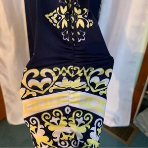 Navy/dark blue with yellow and white print