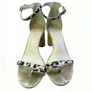 INC leopard, print heels sandals cork heel open toe sz 8.5