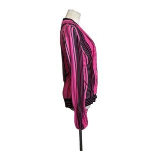 INC pink black stripes long sleeves sequin embellished knit top size M
