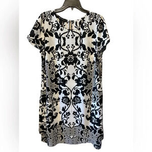 Lovely sheer tunic, with floral design. Split sides, back slightly longer than the front, key hole closure.