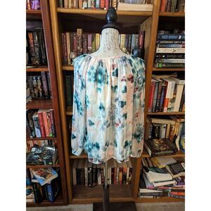 INC silky satin watercolor like poet sleeve blouse sz m euc