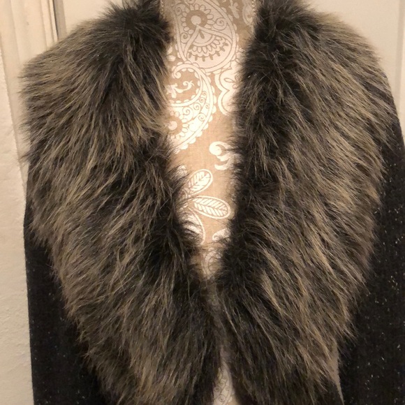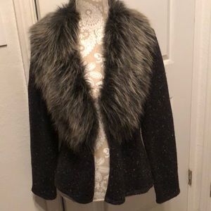 INC wool sweater with removable faux fur collar. 77% wool. Perfect for casual or dressy elegance.